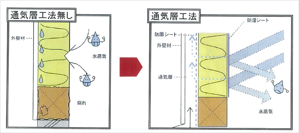 4. 壁内に溜まった結露を逃がす「通気層」を壁内に設置する