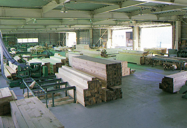 現場施工中は雨も降りますし、厳冬期など厳しい天候の元では現場での施工精度確保が難しい場合もありました。そこで加工場も建設。木材のプレカットや乾燥、そして間仕切りのパネルの工場生産にも着手しました。住宅会社としては異例の取組で多額の設備投資も必要でした。仕事が減ることを心配した大工さんは当時猛烈に反対しました。しかし、より品質の精度を高め、同時に機械化によるコストダウンも図るために断行しました。