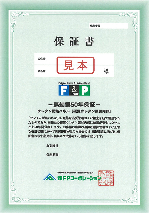 FPパネルが経年劣化が少なく、吸水もほとんどなく水に強いからこそ、無結露50年保証も発行できるわけです。