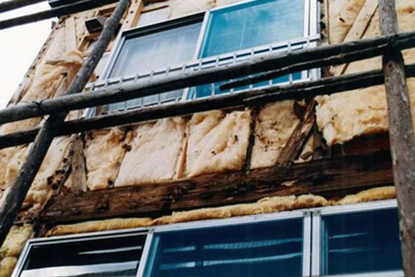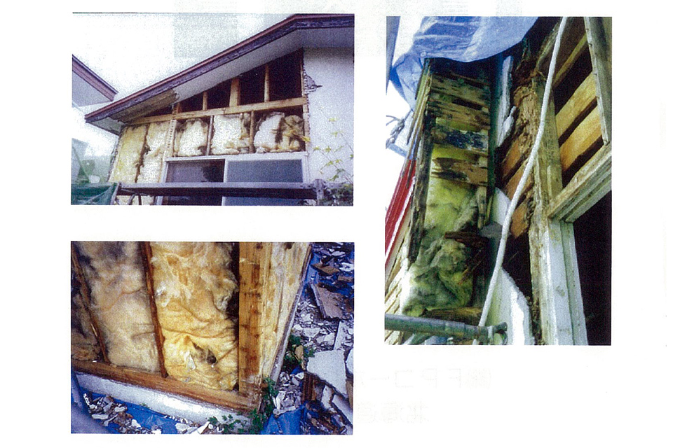 既存住宅の壁を剥がすと壁内で木材が腐り、断熱材も劣化しているケースも多い